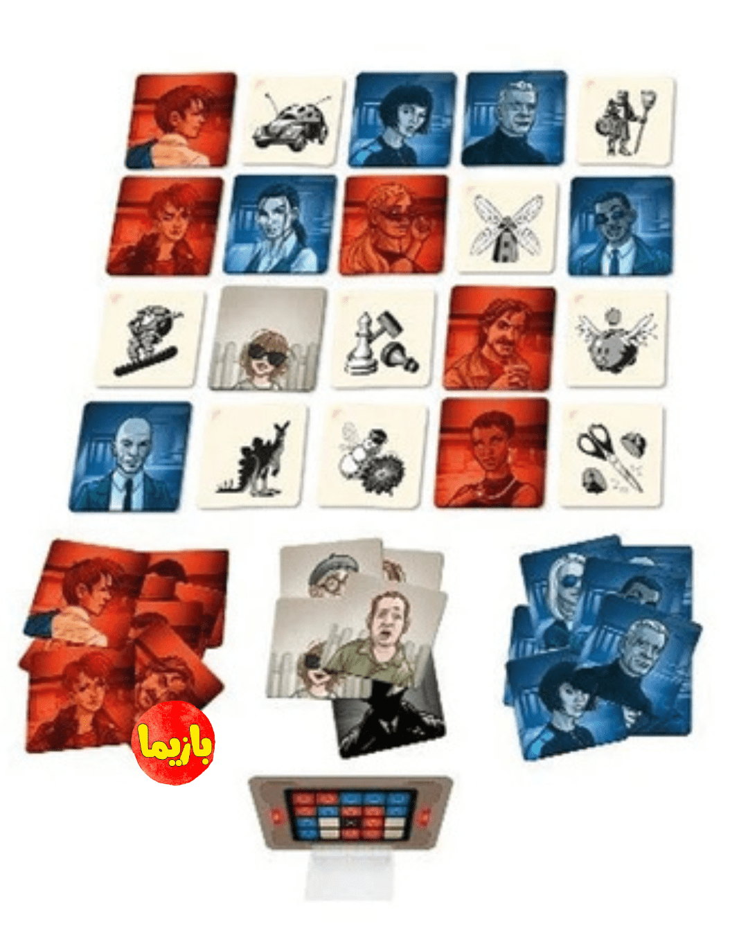 این نشانهها در واقع کُدِ محلهایی هستند که جاسوسها باید با مأموران مخفی ملاقات کنند! بازی فکری کدنیمز تصاویر یک بازی دورهمی هیجانانگیز برای علاقهمندان به رمزگذاری و رمزشکنی است؛ اما مراقب باشید! یک رمزگشایی اشتباه میتواند مأمور شما را مستقیماً به دام دشمن بیندازد… یا حتی بدتر، کارت قاتل را فعال کند!